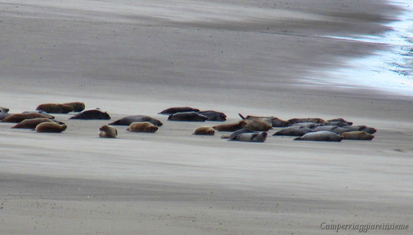 Qui troverete anche diverse piste ciclabili; continuando dopo il parcheggio seguendo la costa verso Cayeux sur Mer ecco che vediamo un grande gruppo di foche spiaggiate. Ricordate di non avvicinarvi più di 30 metri perchè si possono spaventare e le madri abbandonare i piccoli.