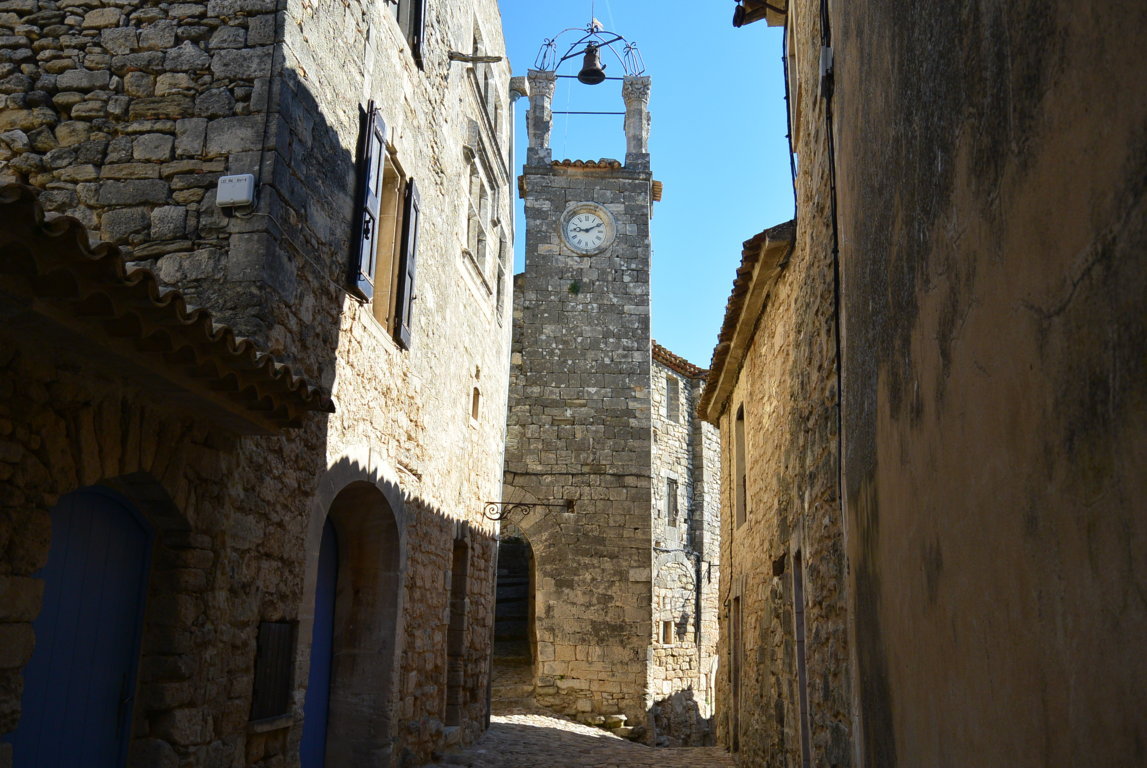 Il paese sta stringendo a spirale, con strade strette e tortuose, intorno al sperone roccioso di “Castelas”, il campanile (orologio corrente), costruita sulle fondamenta di un castello medievale. http://www.france-voyage.com