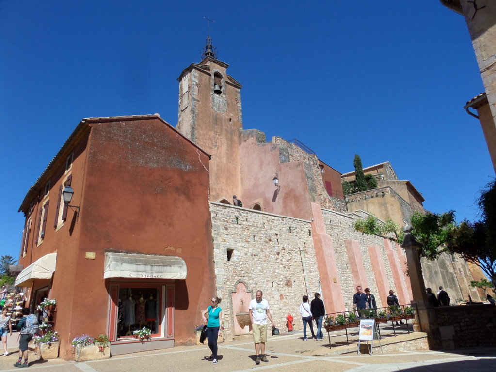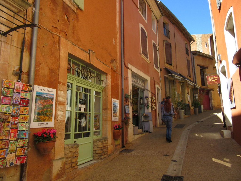 Dopo 20 km eccoci a ROUSSILLON, è anche il villaggio dell’ocra per eccellenza. Bello passeggiare fra le viuzze con le case dalle calde tonalità della terra che le circonda. Tante le botteghe, angoli dove il tempo si è fermato, piazzette deliziose e piccoli anfratti poetici valgono il viaggio.