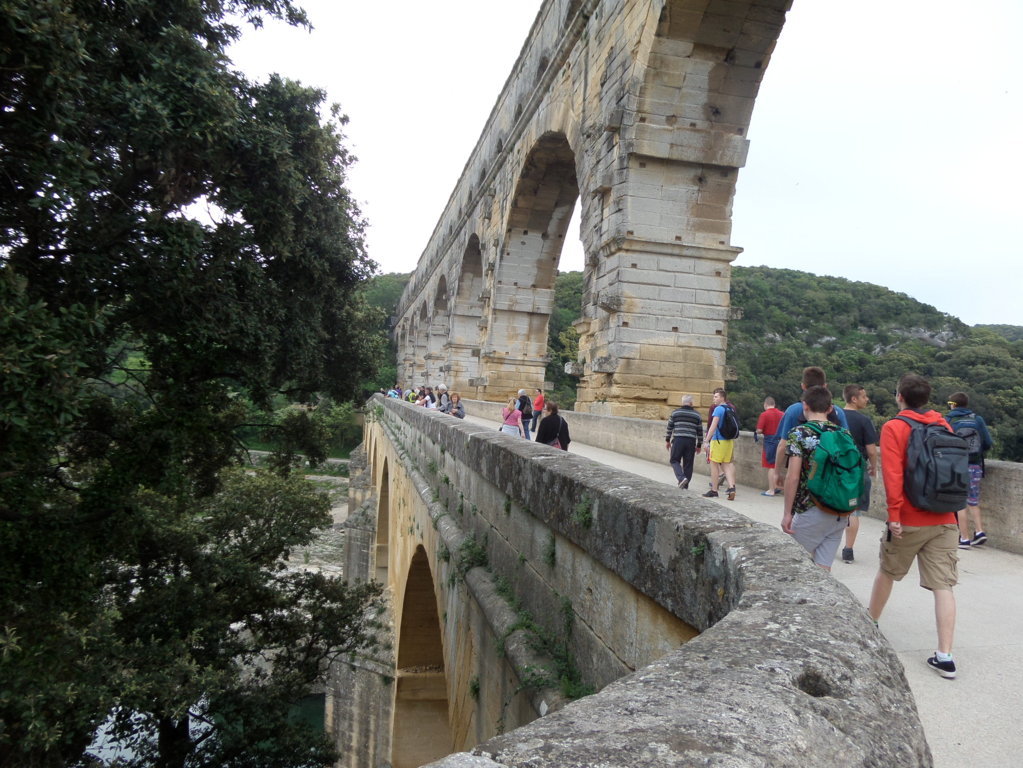 A 30 km c’ è PONT DU GARD, imponente acquedotto romano, il più alto al mondo! Costruito tra Uzès e Nîmes, ha rifornito le città d’acqua per 5 secoli, per oltre 50 km di lunghezza attraverso le montagne. L’opera è costruita su 3 livelli costituiti da archi: il livello inferiore è formato da 6 arcate, quello intermedio da 11 e quello superiore da 35, per un altezza totale di 48 m e attraversa il fiume per una lunghezza di 275 m, una vera meraviglia dell’ ingegneria.