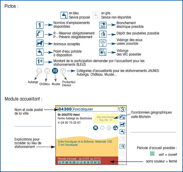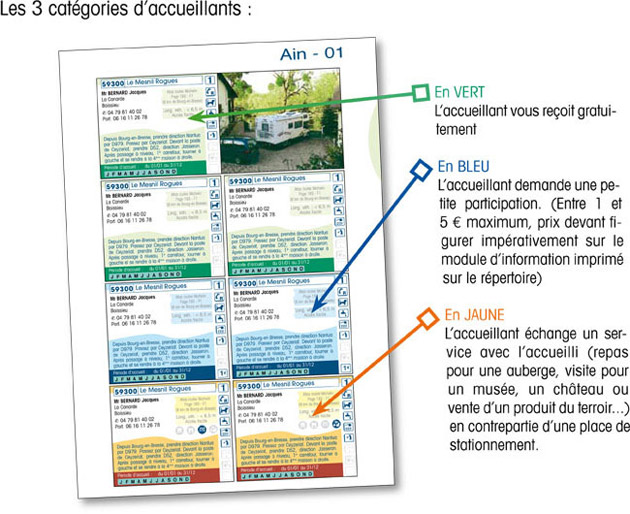 Camping Car d’Hôtes è prima di tutto una guida annuale che elenca le persone che accettano il parcheggio di camper a casa su un appezzamento di terreno o un parcheggio.