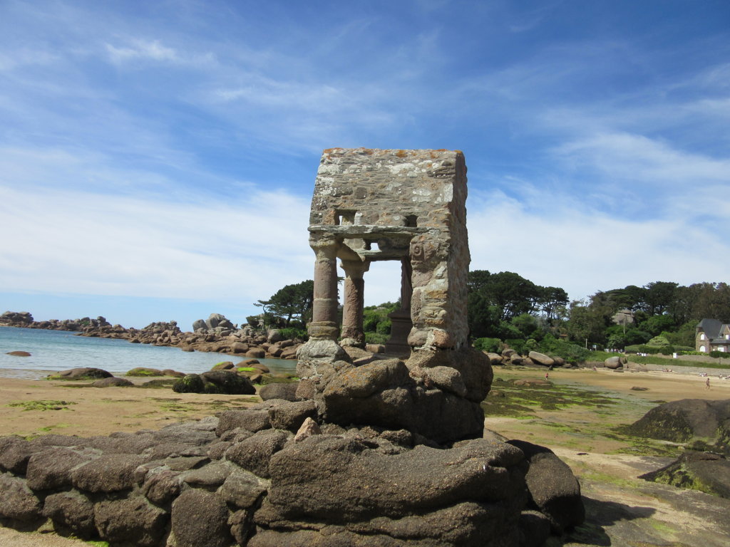 Prima di ritornare al parcheggio ci si può fermare in uno dei locali e creperie di Saint Guirec, vicini alla spiaggia ed ammirare anche l’ Oratoire. Questa costruzione, che sorge su un piccolo scoglio a circa cinque metri dalla spiaggia, si compone di un tempietto a due colonne doriche in granito rosa, datato undicesimo secolo con la bella statua di Saint Guirec, vestito con gli abiti episcopali. Esso è raggiungibile con la bassa marea, mentre con alta marea rimane isolato nel mare.