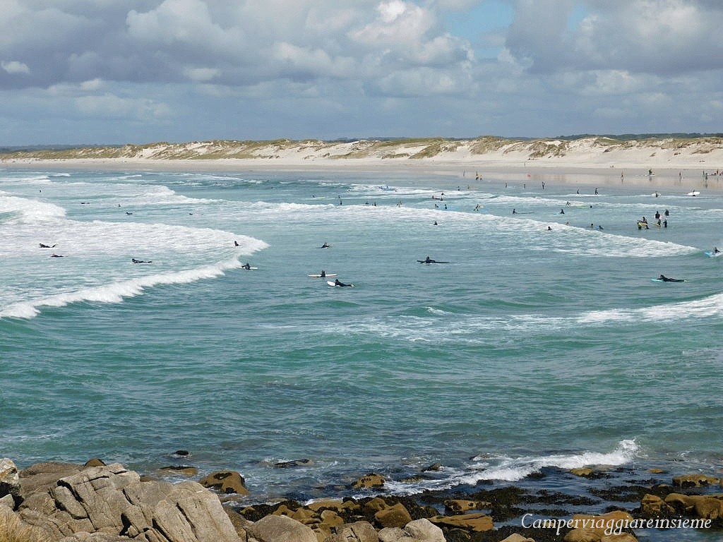 Risaliamo la costa in cerca di una sosta per la notte e ci fermiamo a PENHORS (Pouldreuzic), in un parcheggio su prato in compagnia di altri surfisti in camper, a pochi passi dall’ oceano (no servizi). Gps 47°56’25.9″N 4°23’55.5″W
