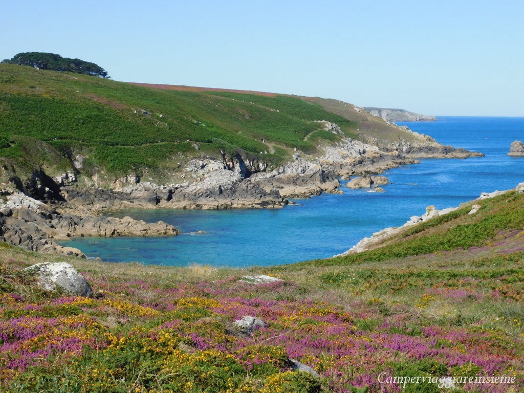 passeggiata in camper seguendo la costa tra belle casette bretoni, parcheggi gratuiti anche notturni, piccole insenature e piccole spiagge molto selvagge, in piena libertà.