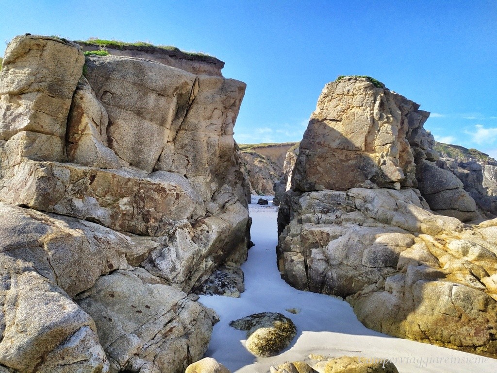 E si continua verso Lampaul-Ploudalmezeau per scoprire il Paradiso. Le foto non rendono cosa è questa conca delle Dune di sabbia bianca con acqua verde smeraldo. Peccato non ci siano molti parcheggi, per scoprirla bisogna sistemarsi lungo le stradine che portano ad essa e il consiglio è di farlo al mattino presto per non trovarle piene di auto. Altrimenti fate un giro in bici o scooter. Es. Gps 48°34’09.1″N 4°39’33.3″W