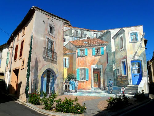 Il giorno dopo siamo a CAPESTANG, borgo medievale che attesta un certo patrimonio storico, come la Chiesa di S. Stefano in stile gotico o il Castello, residenza secondaria degli arcivescovi di Narbonne. Bello il Trompe-l’oeil .