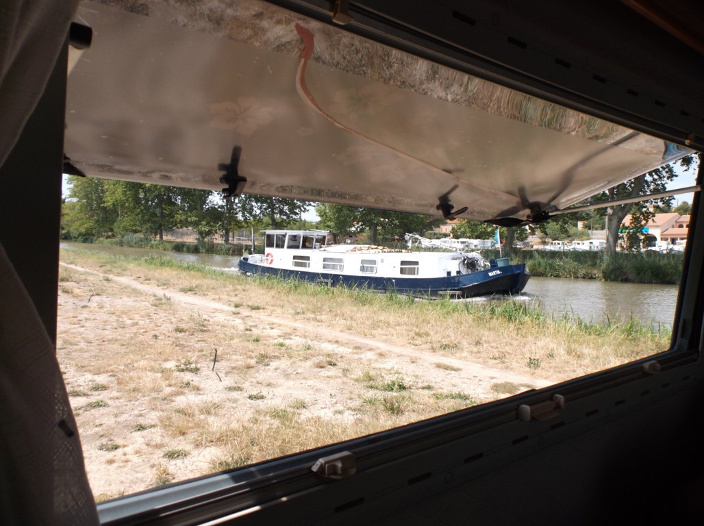 Ci spostiamo a ARGENS-MINERVOIS e sostiamo proprio sulle rive del canale, (Gps 43°14’23.2″N 2°46’01.6″E) vicino al paese e fronte porto. Bellissimo vedere i battelli che scorrono sul fiume davanti al nostro camper !!