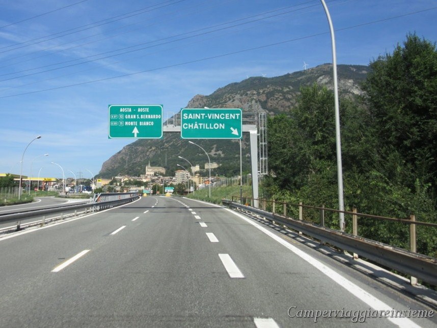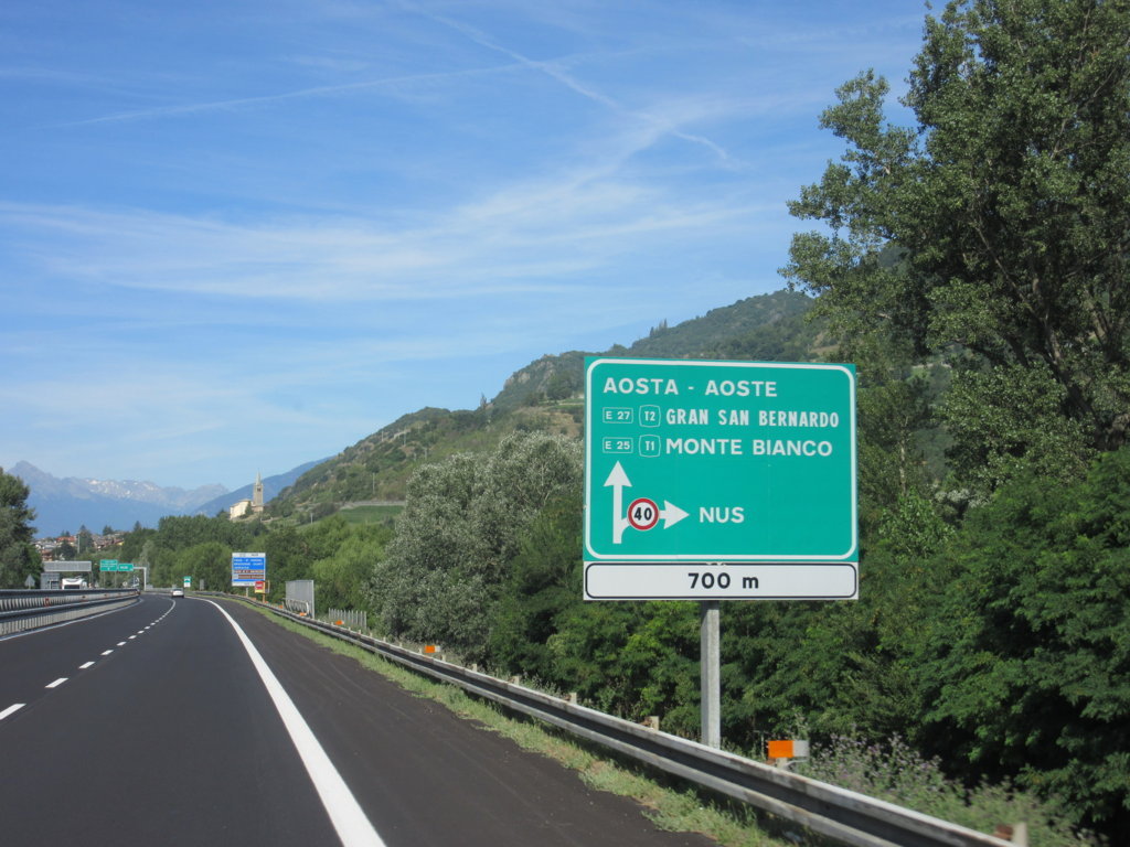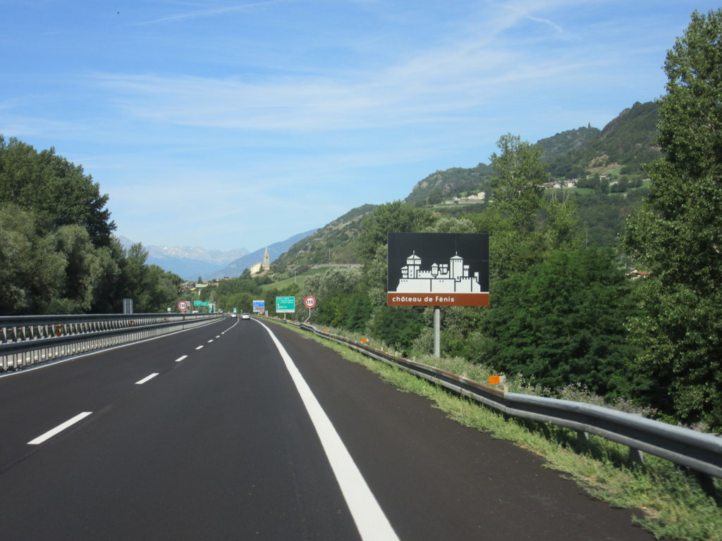 Siamo nei pressi di NUS e si iniziano a vedere le prime indicazioni per il Gran San Bernardo, ma anche per il vicino CASTELLO DI FENIS.