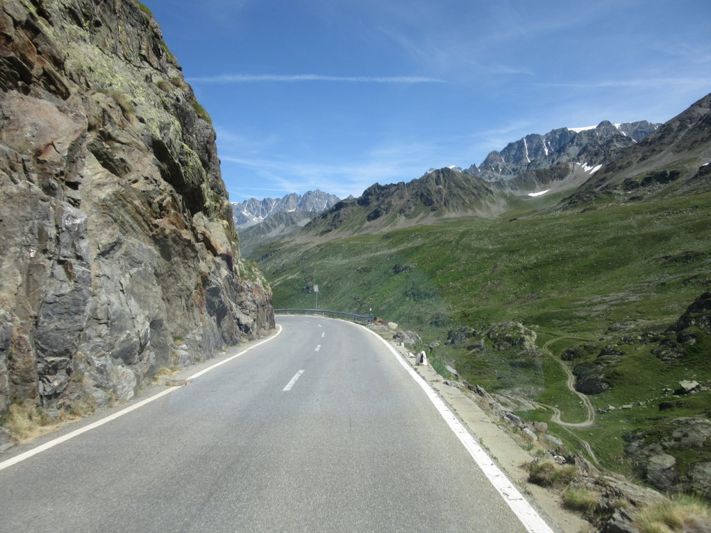 Si inizia a scendere dal versante svizzero; la strada è ancora bella ben percorribile, solo a tratti purtroppo senza guard-rail.