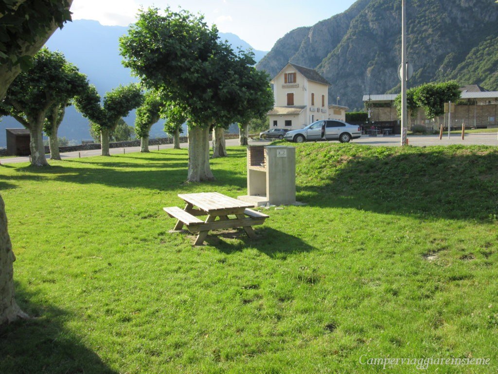 Sempre proseguendo sulla D1006 vi segnalo questa area semplice ma che potrebbe essere utile per una pausa. AREA SOSTA a LA CHAMBRE – Grande Rue (D76) – GRATUITA con servizi a pagamento – prato davanti con tavoli pic-nic e un barbecue – a pochi metri ottima Cooperativa dove comprare buon formaggio – Gps 45°21’45.5″N 6°17’49.4″E.