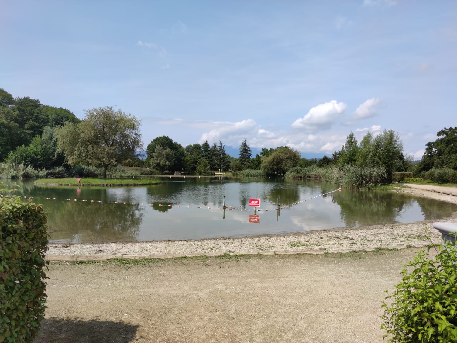 E’ un lago naturale e il suo nome significa “belle piccole acque”, con una parte balneabile; il panorama offre una cornice di boschi che degradano a riva, il colore smeraldo, un grande silenzio, tra il verde qualche chiesina savoiarda.