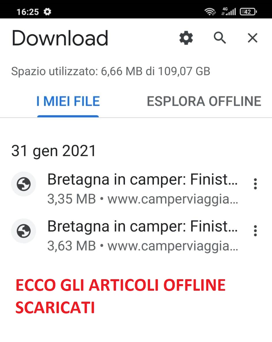 2) DA CELLULARE – Aprite l’ articolo interessato e sempre nei 3 puntini in alto a dx cliccandoli si apre una tendina dove in alto trovate il simbolo di una freccia con trattino sotto che indica il Download o scaricare. Così potrete consultare l’ articolo quando occorre anche senza linea internet quindi offline sempre in GOOGLE nei 3 puntini in alto a dx cliccate la dicitura DOWNLOAD e si apre la pagina con i diari.
