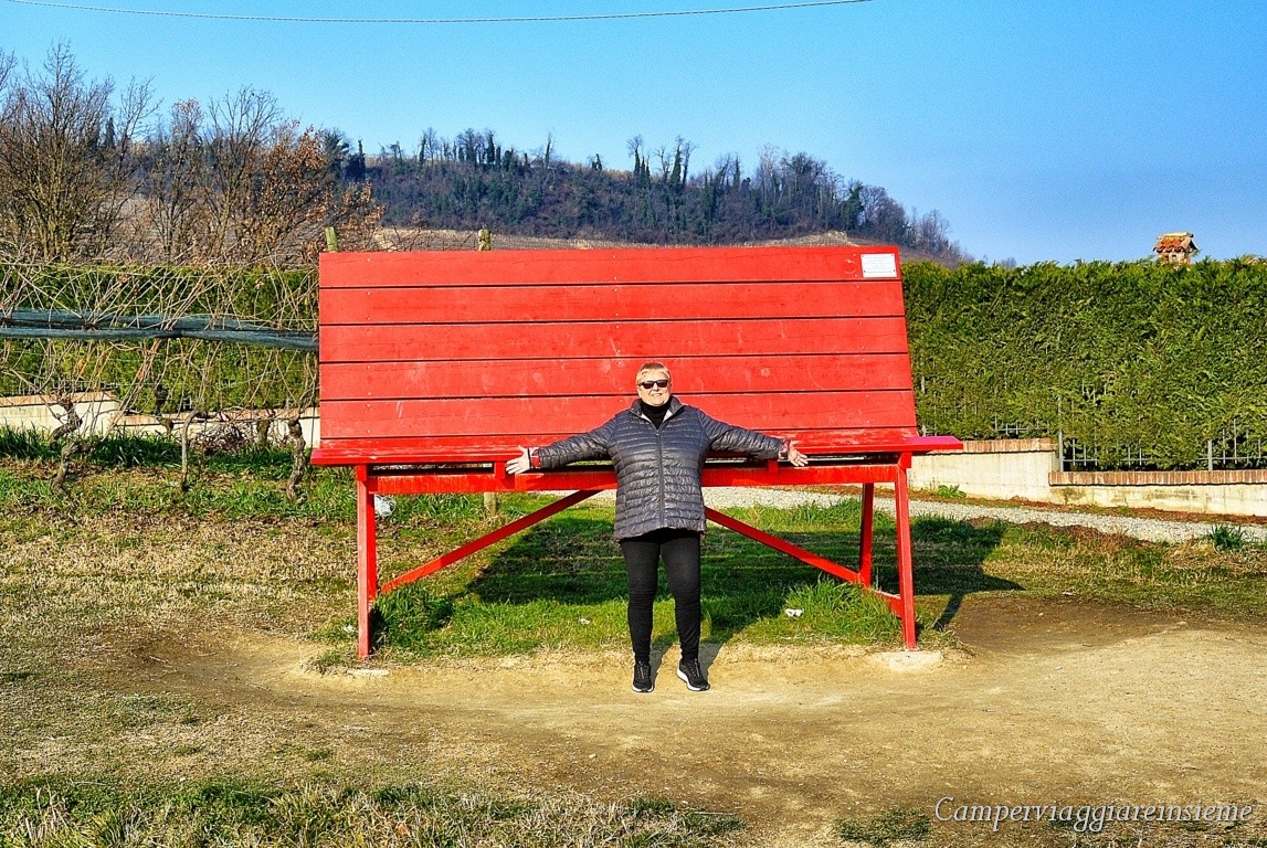 Ma Carrù si trova anche lungo uno dei percorsi delle “Panchine Giganti“, nate dalla mente di Chris Bangle, un designer americano che vive nel piccolo borgo di Clavesana da diversi anni, dove è stata posizionata la prima panchina nel 2010 di colore rosso. Posizionate in diverse zone panoramiche tra le vigne e le campagne della Langhe, sedendosi sopra ci fanno tornare tutti un po’ bambini ! Una parte divertente è collezionare i timbri di ogni panchina che si visita e raccoglierli in un Passaporto (costo circa 6 euro), dove descrivere anche le proprie impressioni; questo può essere acquistato in diversi posti quali bar, ristoranti, trattorie o uffici turistici.