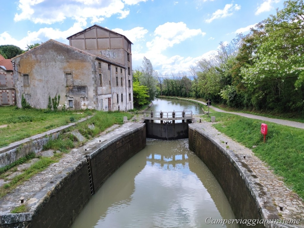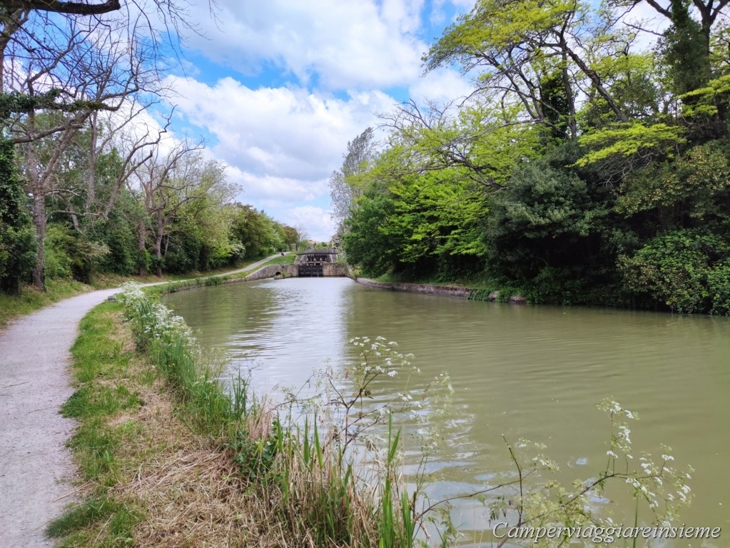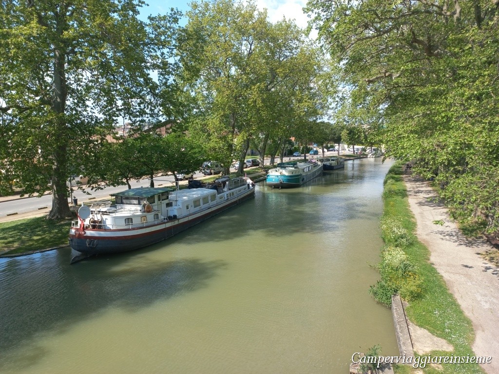 TREBES, un delizioso borgo sul canale du MIDI con porto turistico e un piccolo Pont Canal e ciclabile. Noi ci siamo fermati in un COMODO PARCHEGGIO misto in Avenue Pierre Curie – no servizi – Gps 43°12’30.9″N 2°26’40.1″E