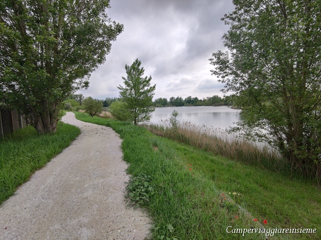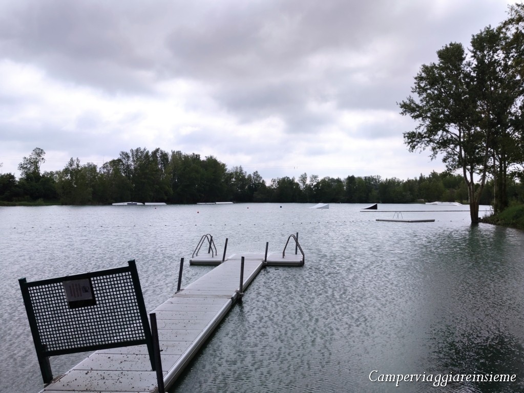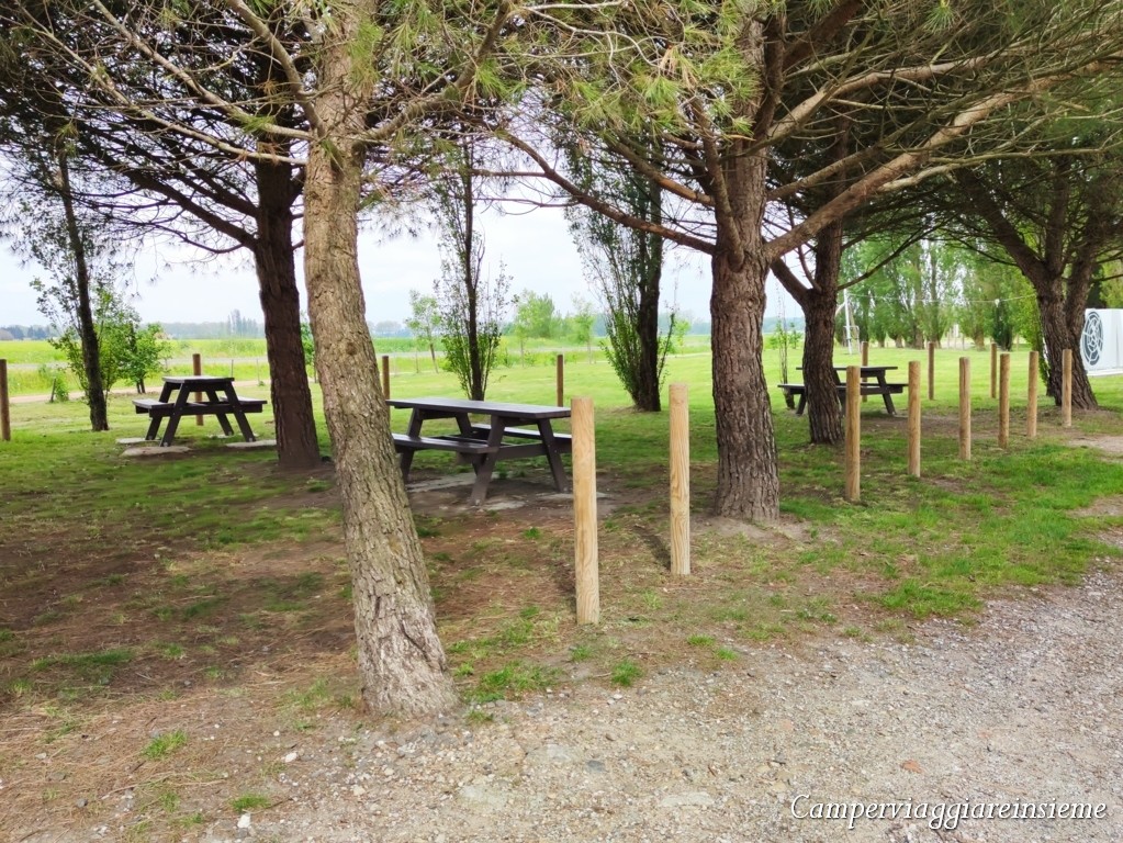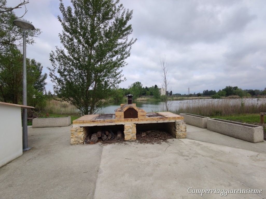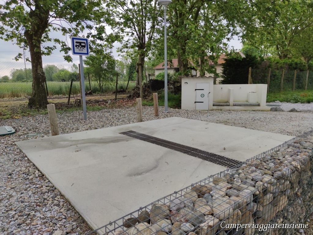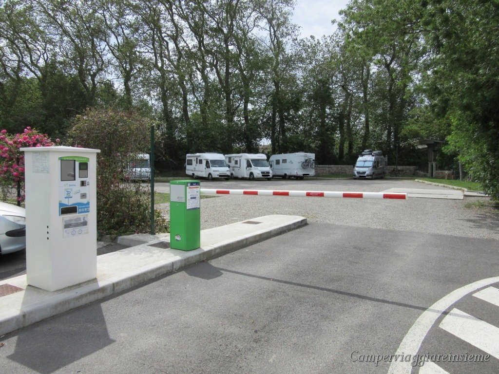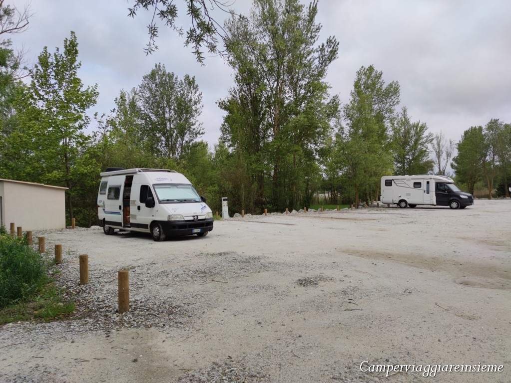 DUE AREE SOSTA molto comode e ben posizionate lungo il fiume – 12 euro – servizi 2 euro – I posti fronte fiume sono particolarmente