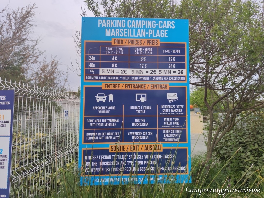 AREA SOSTA – Rue des Goélands 1 – a pagamento euro 4/12 – accesso con sbarra h24, accanto all’Ufficio del turismo – servizi x camper esterni vicini all’ ingresso – possibilità di escursioni in bici grazie alla rete di ciclabili che coprono l’intera zona. Il mare dista 500 metri – Gps N 43°19’09’’, E 3°32’56’’