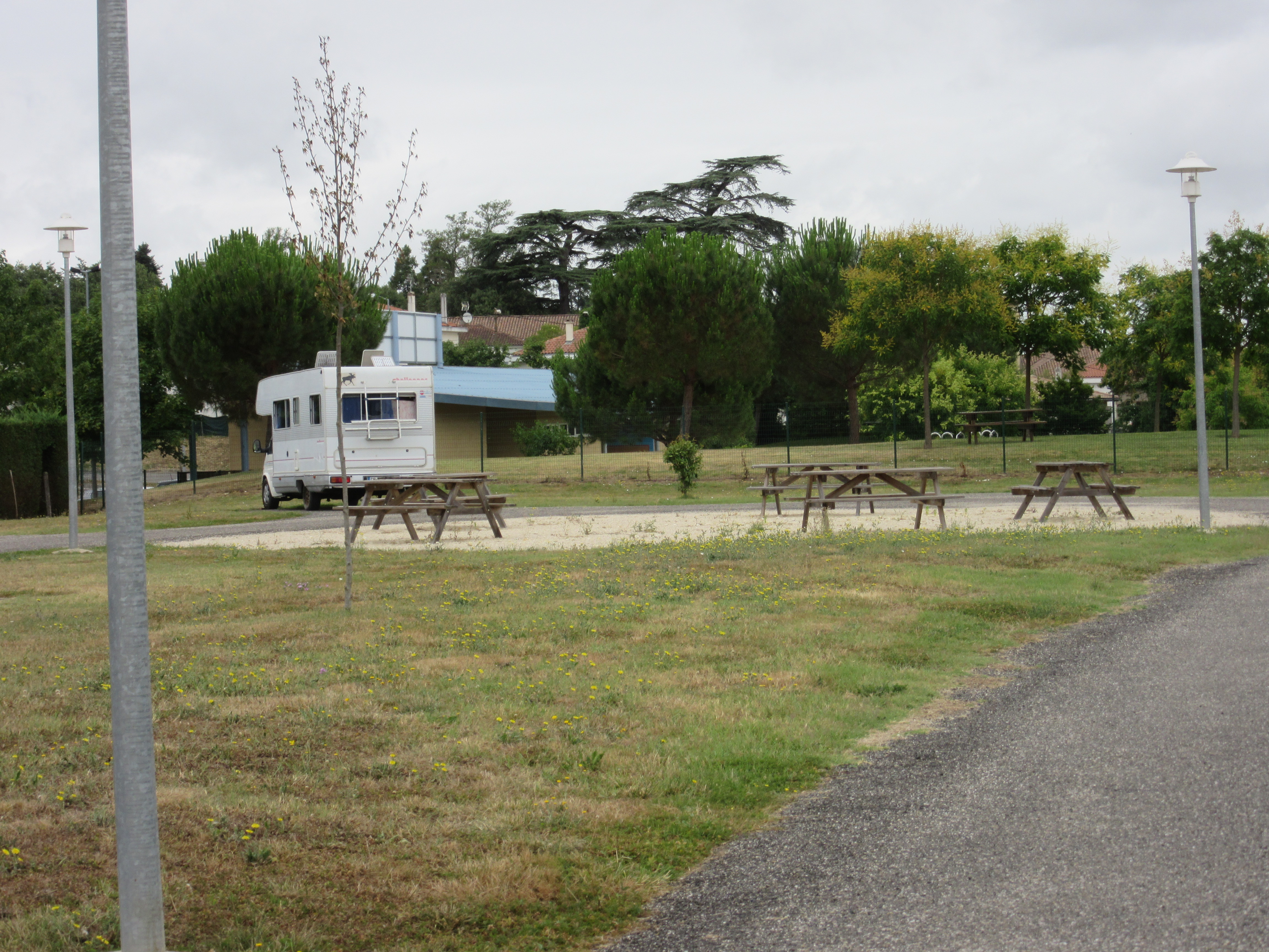 AREA MUNICIPALE – in un piccolo parco – a pagamento 7 euro – servizi gratuiti – centro a 100 m. – Gps 43°59’34.8″N 0°13’45.6″E