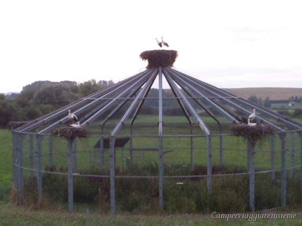 politica di reintroduzione della cicogna bianca con la creazione di un recinto in rue du Jeu de Paume, proprio vicino alla sosta camper, infatti è stata una piacevole sorpresa vedere queste cicogne girare intorno al camper. AREA MUNICIPALE – Rue du Jeu de Paume – GRATUITA – servizi – Gps 48° 38′ 7″ N 6° 18′ 1″ E