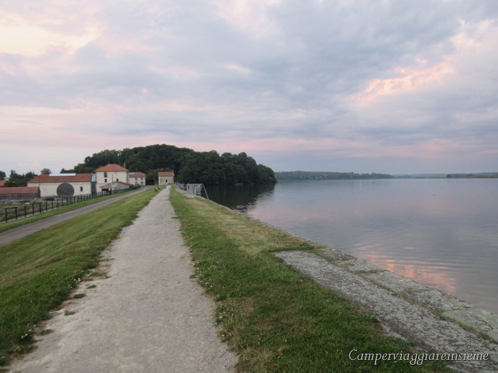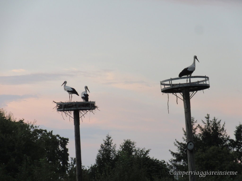 Ma la sorpresa più bella è stata che, poco dopo girando l’ angolo dove termina la strada c’ è un bel laghetto o Etang de Lindre, con intorno una bella passeggiata o ciclabile. Ma ancor più al calar della sera, ecco arrivare una trentina di cicogne. Parlando con una signora che ha un nido proprio nel suo giardino, ci ha spiegato che sono cicogne che un tempo si fermavano solo di passaggio durante la loro migrazione, ma che sono divenute stanziali per cui ci sono sempre. E’ stata davvero una grande emozione inaspettata !! Di giorno si spostano nei campi in cerca di cibo.