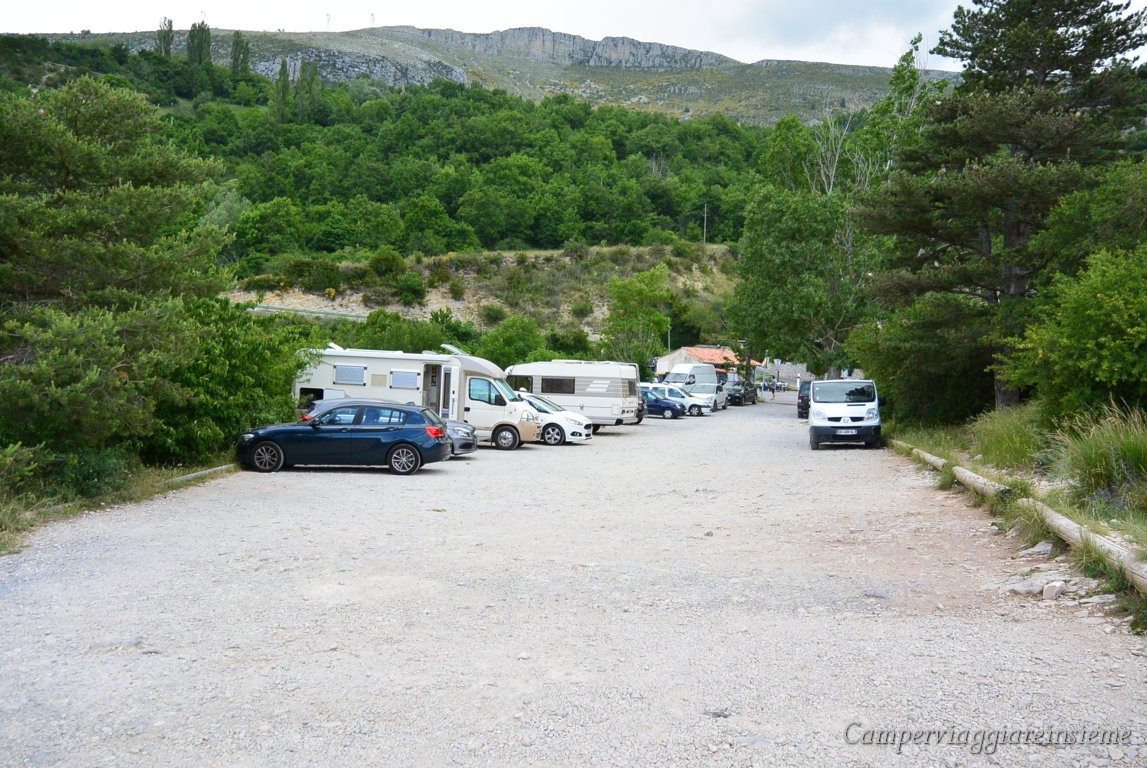 -Area sosta a pagamento euro 8,60- servizi a pagamento – 30 posti – Rue de la Bourgade, Moustiers Sainte Marie – Aperta 1/04 1/10 Gps 43°50’36.1″N 6°13’09.4″