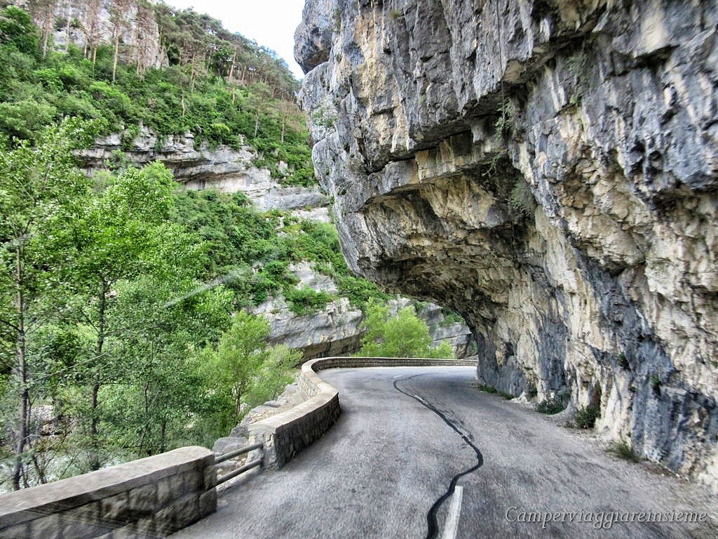 La strada in camper è fattibile solo bisogna prestare un po’ di attenzione in alcuni punti. Non ci sono molte soste possibili lungo il percorso, ci si ferma dove si riesce lungo la strada. A metà percorso circa, nei pressi del villaggio di Rougons, lungo la D952, trovate il Point Sublime Parking 43°47’37.5″N 6°23’53.5″E, da dove parte un breve percorso che vi porta all’ inizio delle Gole.