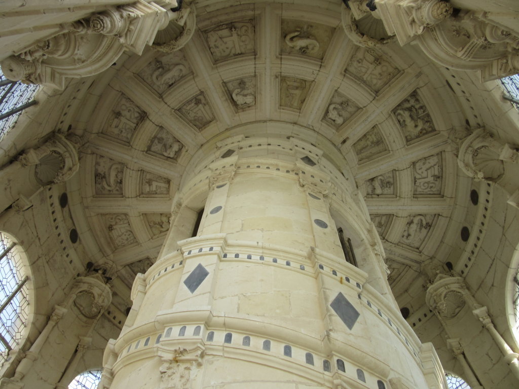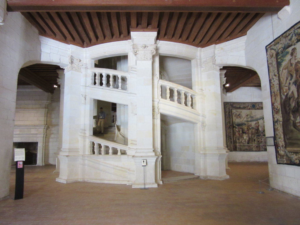 Lo scalone a doppia elica al centro dell’edificio principale rivela lo stile di Leonardo. Esso è composto da due scale a chiocciola rotanti nello stesso senso che non si incrociano mai. Percorrendolo fino all’ultimo piano raggiungibile si ha accesso alla terrazza, anch’essa ispirata da un’idea di Leonardo, che offre una stupenda visione del fiume, del bosco circostante il castello e dei numerosi camini e capitelli che ornano la costruzione.