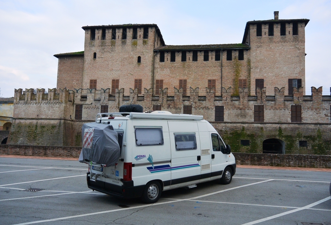 COMODO PARCHEGGIO GRATUITO – su fondo ghiaia – vicino alla Reggia – via Farnese 24 – Gps 44°55’39.5″N 10°22’37.2″E Noi non ci siamo fermati per la notte in quanto eravamo soli – era a marzo – e rimanevamo un po’ isolati.