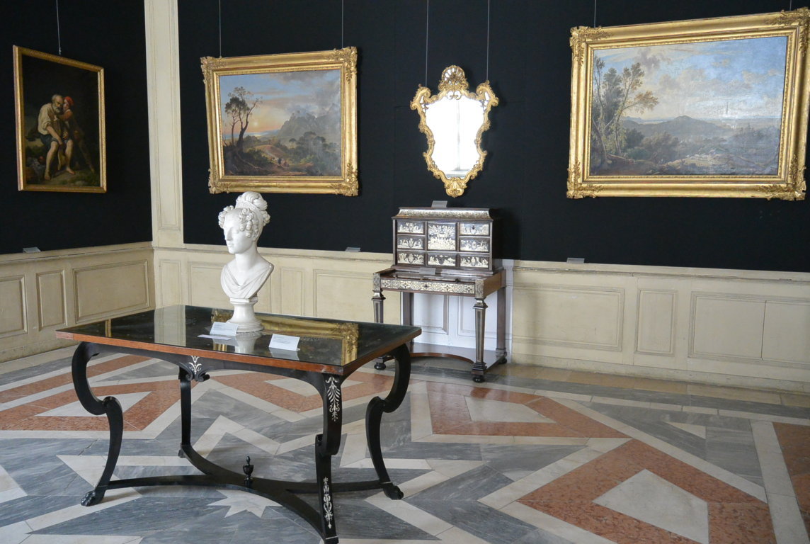 L’ interno è piuttosto spoglio, infatti pochi i mobili, vasi, arazzi provenienti dalle sedi della Provincia di Parma; alcuni sono originali documentati , gli altri sono comunque compatibili per qualità e caratteri formali con la Reggia. Molto belli alcuni pavimenti.