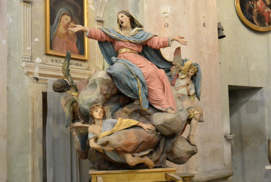 La cupola è decorata con uno splendido affresco. Monumentale anche l’ organo realizzato da maestri bergamaschi e ancora utilizzato.