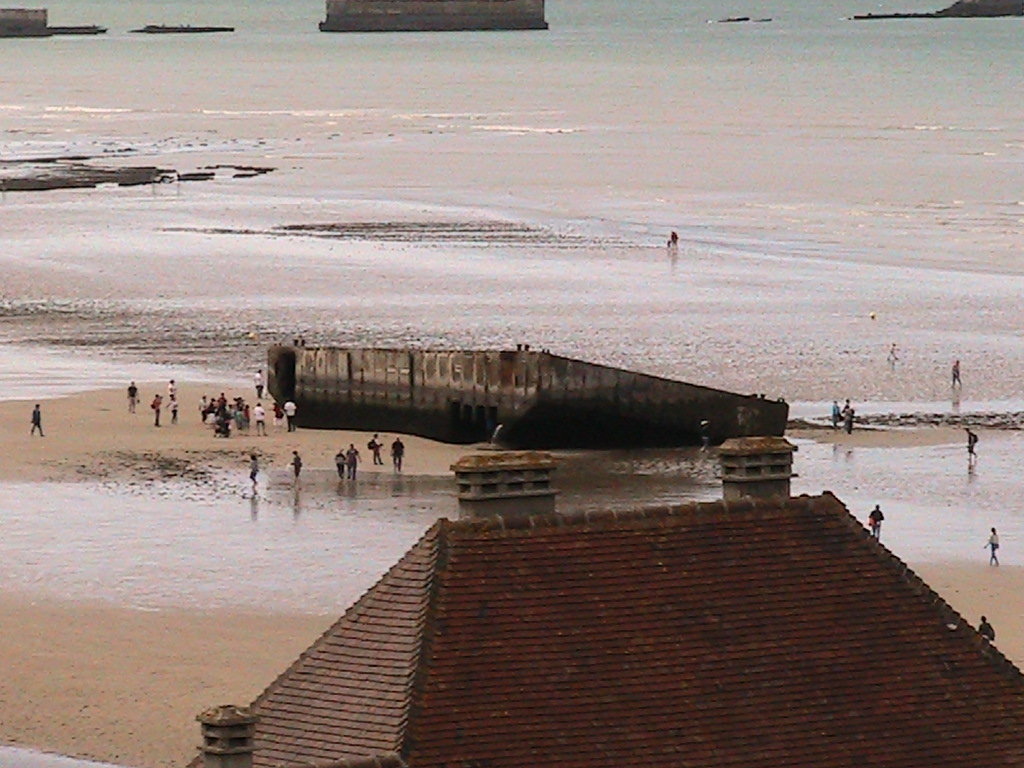 Eccoci appunto ad ARROMANCHES LES BAINS, proprio nel cuore delle spiagge dello Sbarco del giugno 1944, che deve la sua notorietà alle vestige del porto artificiale, che sarebbe dovuto servire a fornire armi e munizioni alle truppe sbarcate. Le immagini di questo luogo divengono così tanto belle quanto commoventi.