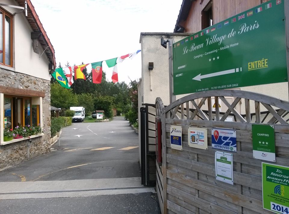 CAMPING PARIS BEAU VILLAGE – 1 Voies Des Prés,  Villiers-sur-Orge – Aperto tutto l’ anno – Tel. + 33 (0)160161786 – è immerso in un antico frutteto sulle rive del fiume Orge, accanto al Parc du Perray, in una tranquilla campagna appena a sud di Parigi – buone piazzole – Titolare gentile e parla italiano – si trova a 30 km circa da Parigi ma è molto ben servito come mezzi ( RER – Metropolitana – bus o treno) – il prezzo decisamente inferiore che restando in centro città, circa la metà.  Gps 48°39’18.9″N 2°18’14.9″E  (NON serve il bollino ambientale)