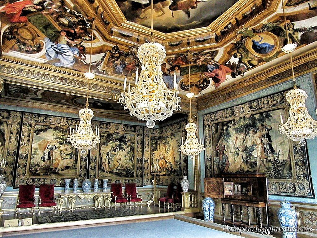 Una delle sale più suggestive della reggia è la galleria degli Specchi, che risplende nella luce riflessa dai suoi tanti specchi e nella bellezza dei suoi stucchi e delle pitture di Le Brun.
