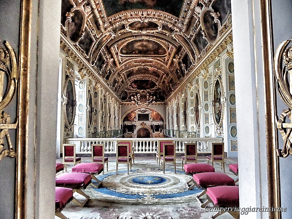 Una delle sale più suggestive della reggia è la galleria degli Specchi, che risplende nella luce riflessa dai suoi tanti specchi e nella bellezza dei suoi stucchi e delle pitture di Le Brun.