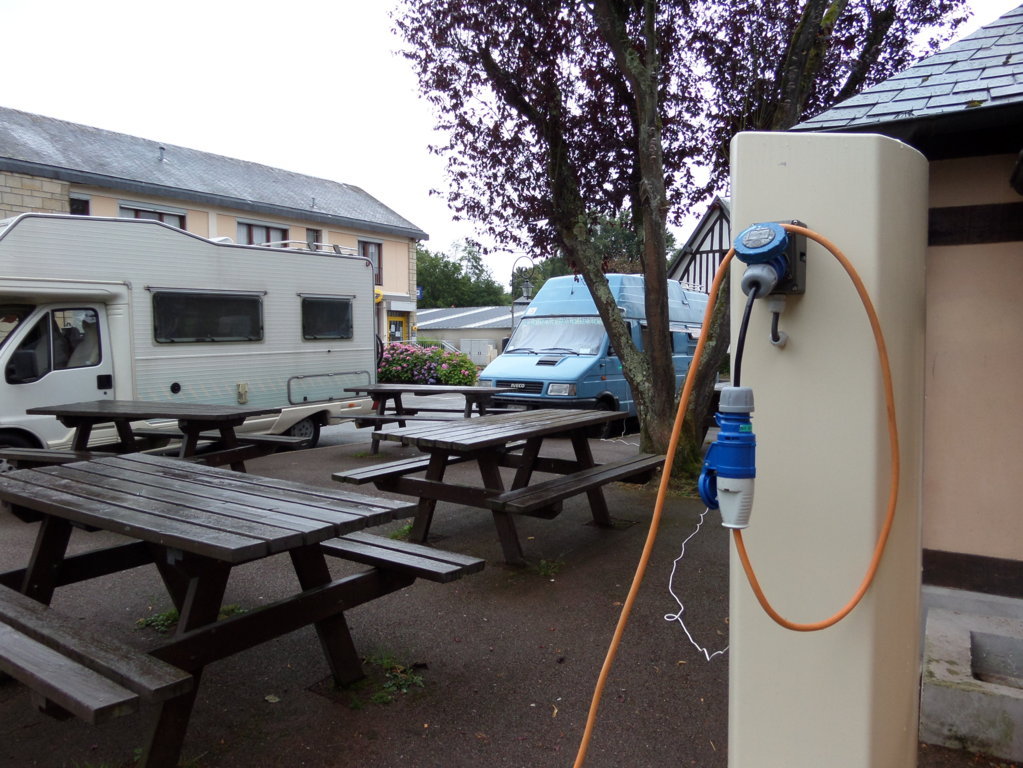 AREA SOSTA MUNICIPALE – a pagamento 6 euro – servizi gratuiti 100 metri prima (gettone dal tabaccaio TABAC PRESS in paese) – area pic nic – Gps 49°11’11.6″N 0°02’57.8″W
