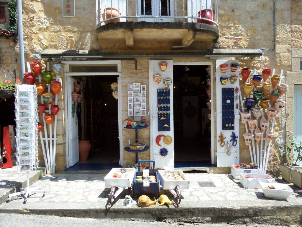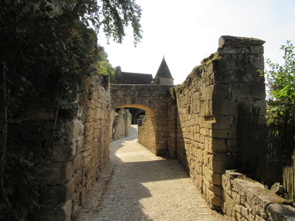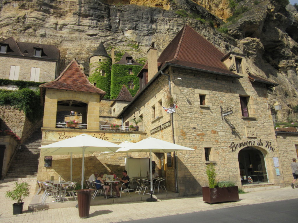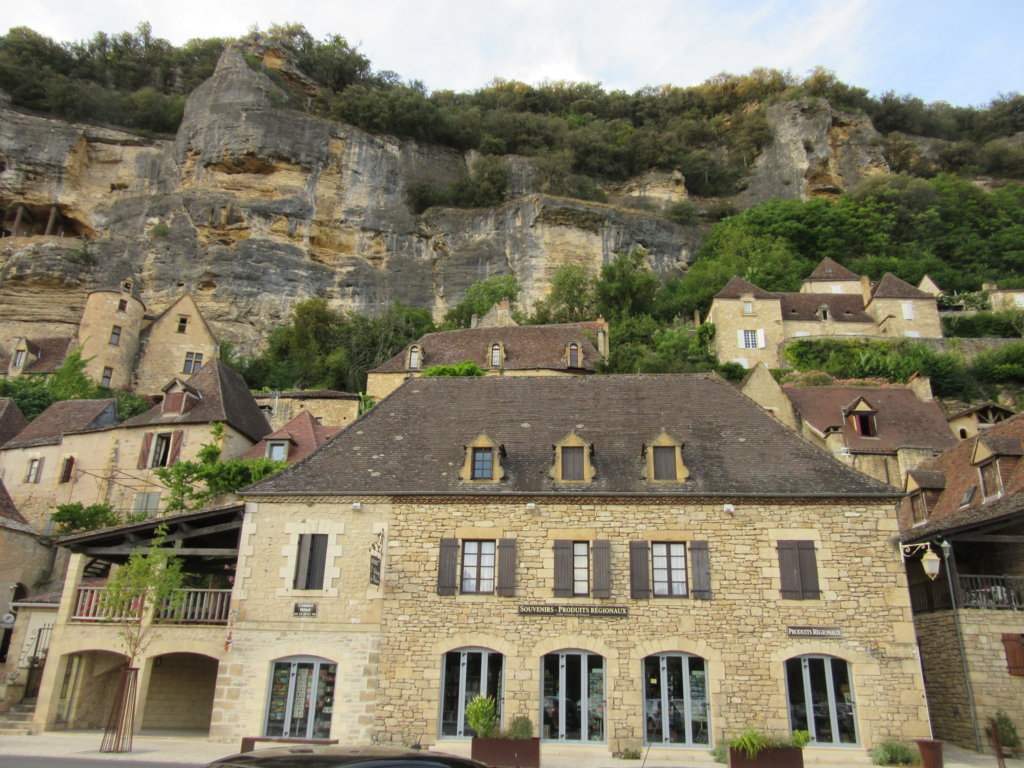 Proseguiamo costeggiano il fiume ed eccoci in un posto incantevole, La ROQUE GAGEAC. Questo villaggio è incastonato nella falesia, dove piccole strade o scalinate vi portano nel cuore del borgo, scoprendo botteghe tipiche, una antica chiesetta, un forte troglodita, e dove, grazie al clima, fiorisce un sorprendente giardino esotico con palme, banani, agavi, fichi, cactus, bambù ecc.