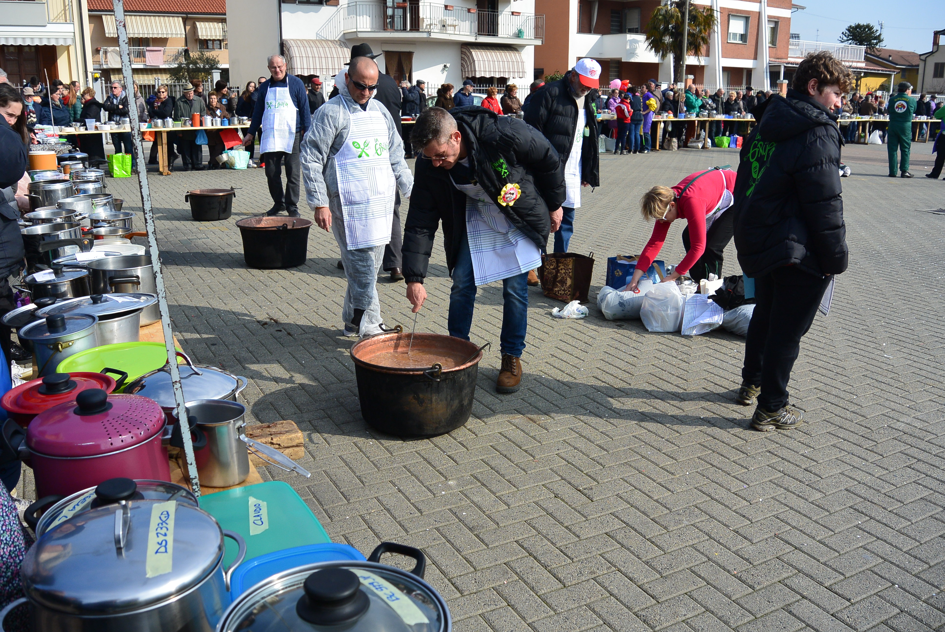 A Santhià, non sarebbe Carnevale senza la Colossale Fagiuolata del lunedì grasso, vero fiore all’occhiello della manifestazione. Con circa 20.000 razioni distribuite gratuitamente alla popolazione, si tratta probabilmente della più grande fagiuolata d’Italia.