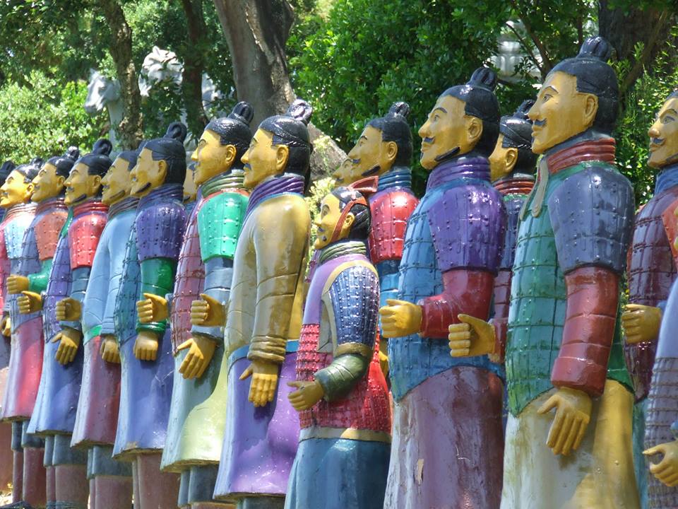 Tra Buddha, pagode, statue di terracotta e sculture varie accuratamente posizionate tra la vegetazione, si stima che sono stati utilizzati più di 6000 tonnellate di marmi e graniti per costruire questo lavoro monumentale.