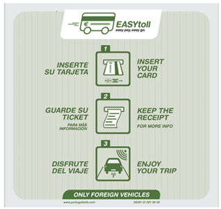 Una volta di fronte al terminal EASYtoll si dovrà solo inserire la carta di credito. Verrà rilasciata una ricevuta che deve essere mantenuta fino a quando tutti i pedaggi saranno addebitati sul conto bancario. Da quel momento si è in grado di viaggiare su autostrade con pedaggio elettronico senza intoppi. http://gotoportugal.eu