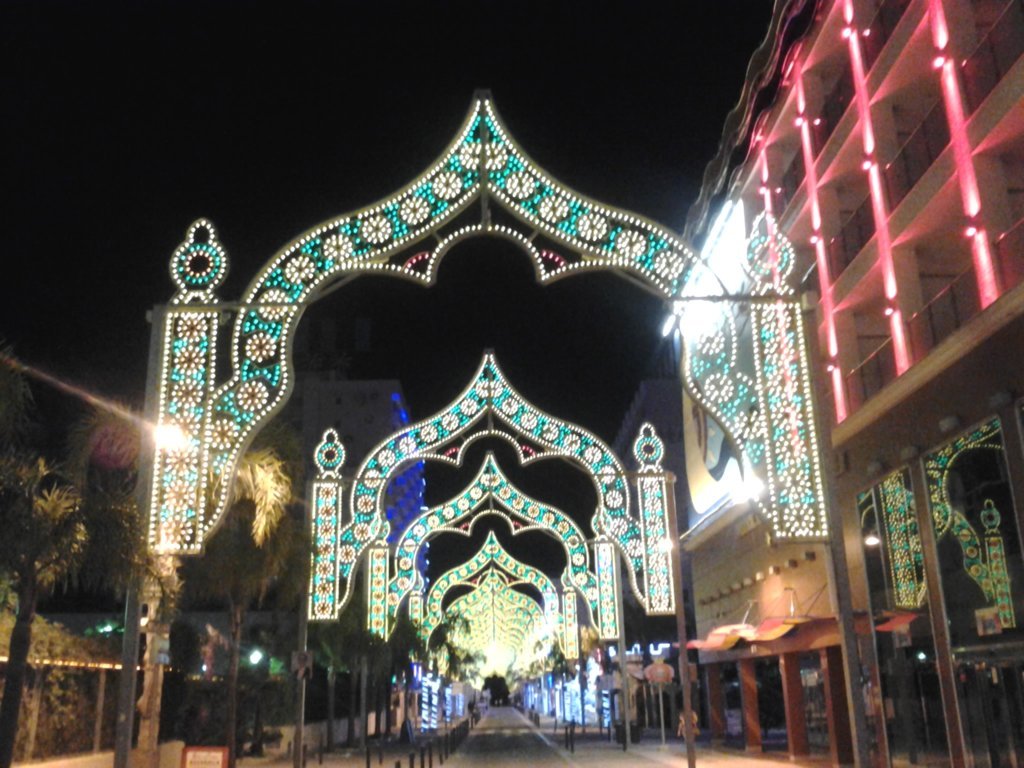 Infatti sembra una città magica, piena di luci e decorazioni come in una favola, mi ricorda molto BOLLIWOOD! Pensate che le docce sulla spiaggia sono a forma di elefante. Inoltre ha dei giardini lungomare meravigliosi, con cigni, pavoni ecc., le panchine tutte decorate a mosaico con forme uniche, giochi per i bambini e tanto tanto altro da scoprire ! Le spiagge non sono le più belle di Spagna ma è davvero una cittadina allegra per i bambini.