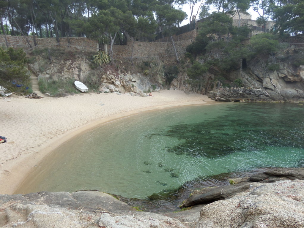 Torniamo al mare a PLATJA D’ ARO, la classica cittadina di mare, ricca di negozi, lunga spiaggia di ghiaia fine di circa 2 km. Se però esplorate la costa verso est, al termine del lungomare, è possibile percorrere il meraviglioso Cami de Ronda, un sentiero affacciato sul mare che segue la costa per circa quattro chilometri, tra calette, spiagge, in un paesaggio da perdere il fiato. Le prime sono CALA ROVIRA e a fianco CALA SA COVA, con acqua color smeraldo che sicuramente vi inviterà a fare un bagno !