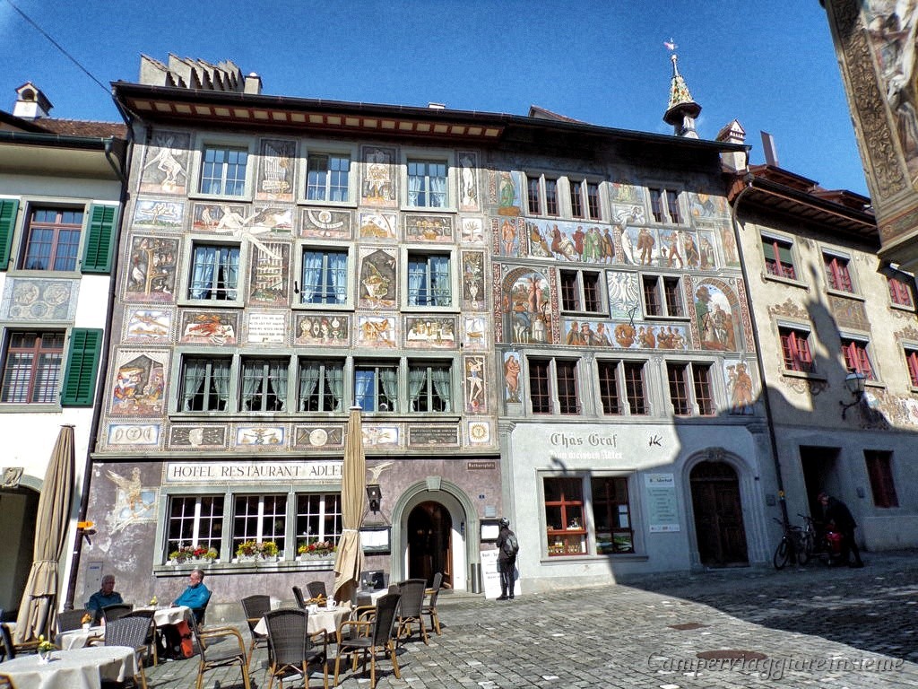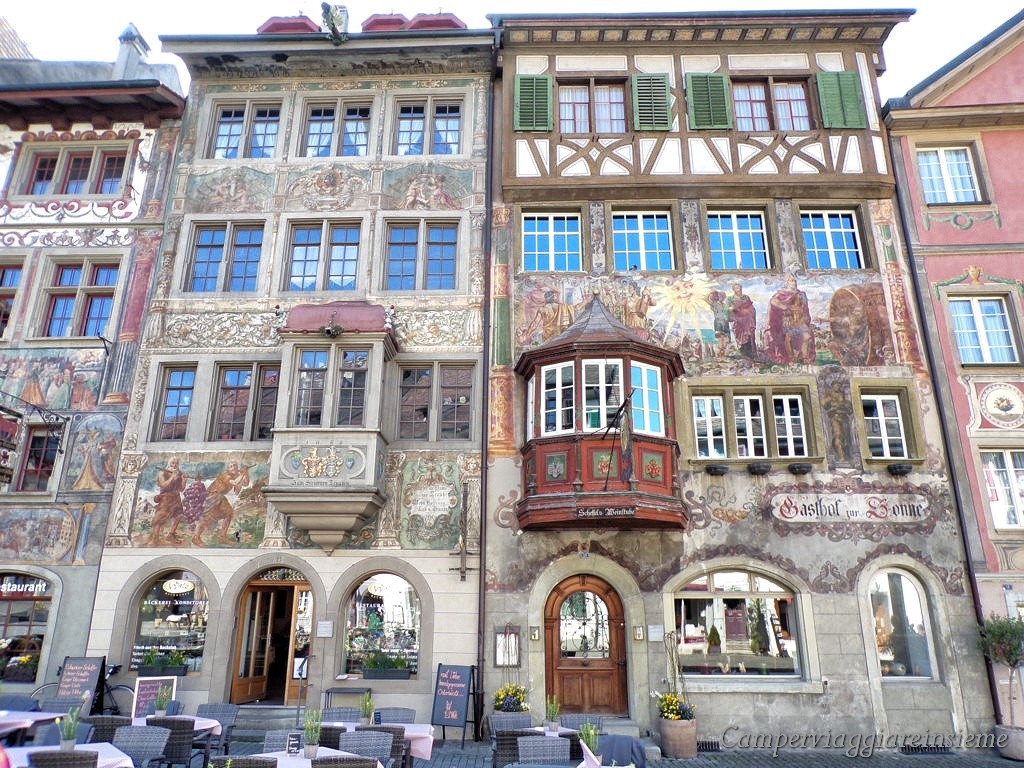 Logo SitoPranziamo nel parcheggio per poi nel pomeriggio fare altri 25 km in direzione STEIN AM RHEIN.  Che dire se non che è impossibile non innamorarsi di questa piccola perla del Canton Sciaffusa che sorge sulla sponda occidentale del Lago di Costanza e si affaccia sempre sul fiume Reno.