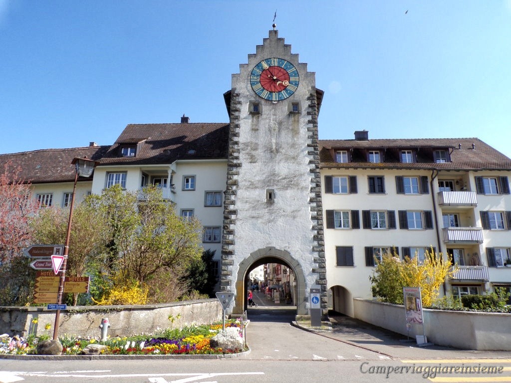 Parcheggio a pagamento diurno – gratuito dopo le ore 18 sulle sponde del fiume, con bella passeggiata, dove abbiamo anche dormito. Gps 47°39’44.6″N 8°51’16.4″E  Oppure solo per una visita 2 parcheggi più centrali Gps 47°39’41.3″N 8°51’27.6″E
