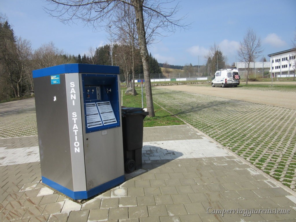 Per pranzo ci spostiamo all’ area sosta di SCHONACH, passando prima all’ ufficio del turismo (Gps 48°08’31.9″N 8°11’54.9″E) a ritirare i 3 gettoni per poter usufruire sia del carico acqua, dello scarico acque nere che della corrente – AREA a pagamento 7 euro e il prezzo include bus gratuito, piscina e altre attività nella zona. – Gps 48°08’45.0″N 8°11’23.0″E
